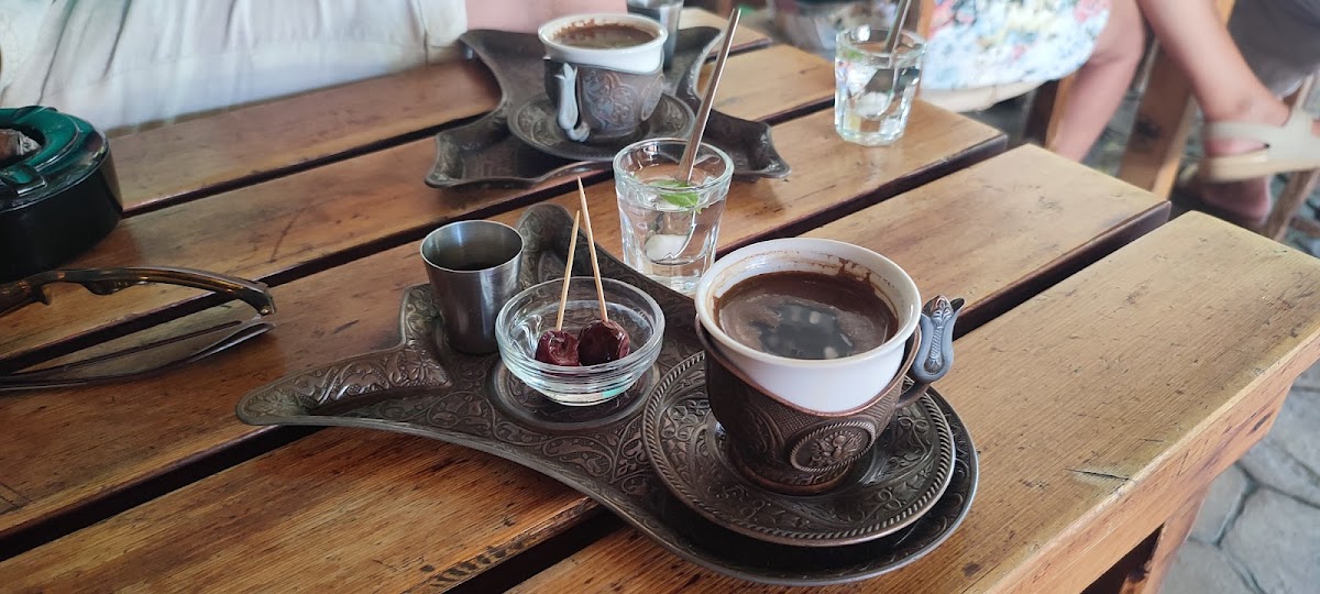 As you make your way through the door, the aromatic scent of freshly brewed Turkish coffee greets you, promising a truly immersive experience. The owner, dedicated to the art of coffee brewing, prepares each cup in a traditional manner, cooking it in hot sand, a technique that not only infuses the coffee with a unique flavor but also creates a delightful visual experience. You won’t find a more authentic “Turk kahvesi” preparation anywhere else!